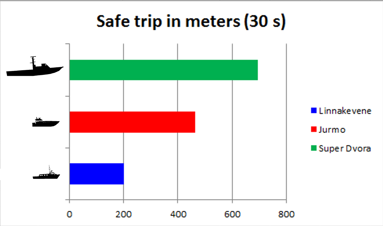 Thus, in the 30 second window of opportunity we have granted it, the Linnakevene can travel ~200 meters. Any longer distance between concealments, and the boat is at risk. Traveling at slightly more than double the speed, the Jurmo (naturally), also travels twice the length, and reaches over 460 meters in 30 seconds. In the meantime, the fast Super Dvora can almost reach 700 meters.