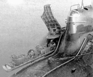 När vattnet lugnat ned sig skickar minjakten ned sin obemannade farkost och får direkt kontakt med ett till synes intakt ubåtsskrov med två femkronestora hål i – ett i fören och ett akter om tornet. Ubåten klassificeras senare av dykare som en ubåt av typen Projekt 865 Piranja. Bägge sidotuberna är tomma och luckorna är öppna. En av två Proton-dykfarkoster kan inte återfinnas….