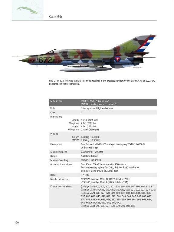 While the title (ISBN 978-1-950394-09-8) does sound rather specific, it should be noted that the book kicks off with a short walk-through of the early years of Cuban military aviation, before discussing the collection of combat aircraft that made up the first air force of the communist regime. The air operations of the Bay of Pigs/Playa Girón operation also gets described in some detail, despite the obvious lack of MiGs among the B-26s, Sea Furies, and T-33s that flew around in the skies of this strange incident. However, by 1961 the first MiG-15 arrive, and from there up until the present day different MiGs represent the fast jets of Cuba, meaning the book in fact does give a rather good overview of the combat operations and equipment of the tactical fixed-wing aircraft of Cuba (including the Missile Crisis).