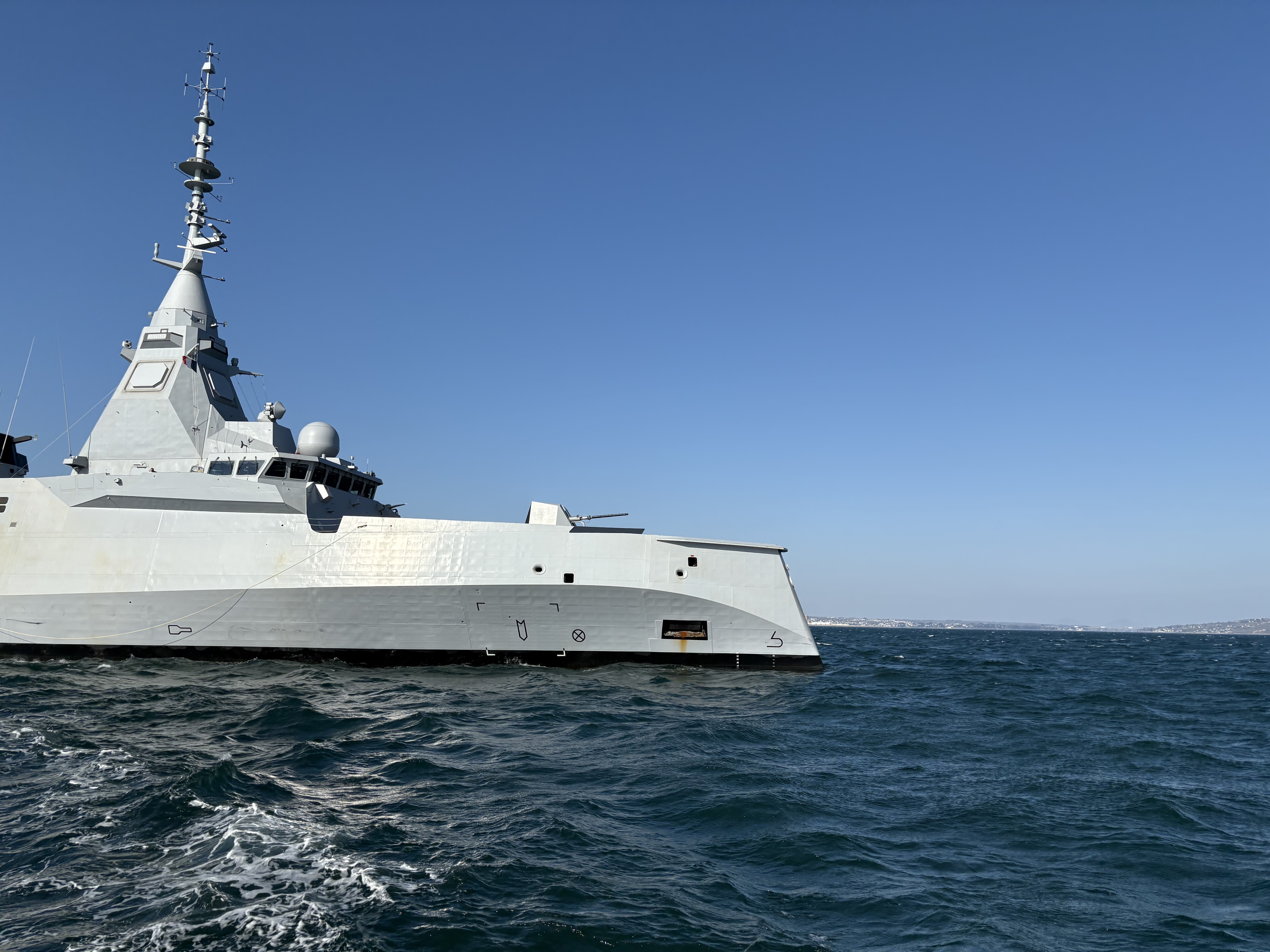 As mentioned in my last post, the idea behind the FDI was that it will need to be able to do everything the FREMM does, and that obviously means that there needs to be the same or corresponding weapons, sensors, and combat systems onboard. Starting from the bow, we have an old familiar face, the classic OTO-Melara 76 mm deck gun (these days known as the Leonardo OTO 76/62 SR) in a stealth cupola. With cyber security being a key part of the FDI, it is interesting to note that the gun is in fact tested and declared secure. The basic OTO might be a Cold War-veteran, but in its newer versions it has proven to be an able and reliable weapon, which has shown its usefulness in the Red Sea where having a reliable air defence with some range and a serious depth of magazine against drones has proved valuable. The choice of calibre for deck guns is – as with everything – a compromise. Going up to 100 mm as the French did pre-FREMM or the 5’’/127 mm of e.g. the British Type 26-class frigates is an option that would bring more destruction per shell and in particular as the last anti-ship weapon or when providing gunfire support against land targets the heavier weapons carry significantly more punch, but they also add weight to the ship and will usually lower the rate of fire. Still, at a time when many vessels drop down to a 57 mm weapon – such as the Bofors planned for Type 31, Pohjanmaa, and the troubled US Navy FREMM-version of the Constellation-class – the choice of a 76 mm deck gun for a 4,600 ton frigate feels like a balanced choice. An interesting touch is that the gun can be controlled by the quick-point designator found on either bridge wing of the Amiral Ronarc’h. This is a handheld sighting device with a laser-rangefinder and so forth, which mostly is used by a person standing watch on the bridge wing to designate points and targets quickly and easily, and then at the push of a button send these to the combat management system. However, in certain cases it can be used to directly control the 76 mm deck gun. You aim at the target with your handheld sight, get the bearing and range, and push the button to send a 6 kg high-explosive shell going 900 meters per second at your designated spot.